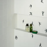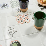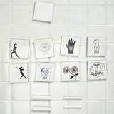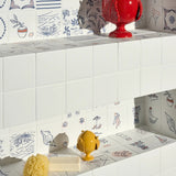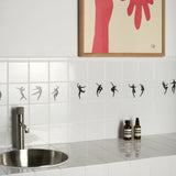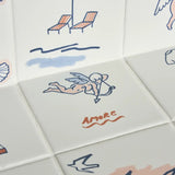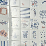This series of 10x10 cm porcelain tiles tells stories that interlock like puzzle pieces, unveiling a fresh narrative with every arrangement. Featuring Dance, Eddie, Caravan, and Costiera, four distinct chapters emerge from either a matte or glossy white background, all part of a unified collection.