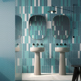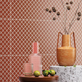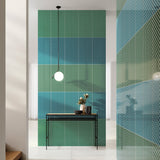 The grid serves as the primary identifier in this collection of tiles. Initially inspired by the back of the tiles, this geometric pattern takes on a new character in Upside, transforming into a visually striking decoration. Made up of delicate lines that intersect at perfect angles, the grid creates a consistent and captivating impression. The spaces are enhanced and energized by the glossy glaze, highlighting the graphics and accentuating the vibrant colors.