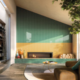 Upside comes in a glossy finish, enhancing the vibrancy of the colors and creating an impactful aesthetic. The reflective surface interacts with light and amplifies its three-dimensional appearance, giving the material a dynamic and lively quality. The collection introduces a modern visual code that challenges viewers to see the material in a new light and imagine creative uses that align with current interior design trends.