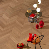 Trasparente and Sabbia Oak finishes are both FSC® 100% certified. The product is engineered wood with low formaldehyde emissions, the structure is made of an Eucalyptus backlayer and a toplayer in oak or american walnut.