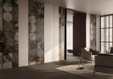 This pattern taken from the Madama Butterfly Collection recalls one of the most poetic verses from Puccini’s opera. With a fixed size measuring L 401 cm x H 300 cm, it is made up of a combination of elements in five different materials: GlamSatin, GlamRafia, GlamCork, GlamPure, and GlamBirch. All the elements dialogue with each other thanks to a fine golden line along the join.