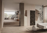This pattern taken from the Madama Butterfly Collection recalls one of the most poetic verses from Puccini’s opera. With a fixed size measuring 372 cm x H 300 cm, it is made up of a combination of elements in five different materials: GlamSatin, GlamBirch, GlamRafia, GlamCork, and GlamPure. All the elements dialogue with each other thanks to a fine golden line along the join.
