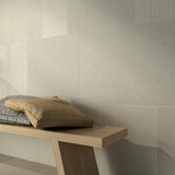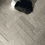 To enhance these natural characteristics we are immersed in a study and analysis of different cuts and tones, aiming primarily towards architectural design. Along with the natural finish, a ridged surface and a scratched are conceived in three colors: White, Grey and Mud.