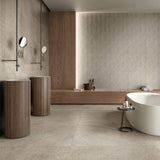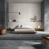 Drawing inspiration from textile artistry, Tweed features a refined herringbone pattern that expresses movement through its zig-zag diagonal rhythm and varying relief thickness. The two-tone graphic design accentuates the surface's three-dimensional quality, crafting a sophisticated play of light and shadow that elevates the stone's texture with a modern perspective. Presented in a 60×120 cm format, it enables the creation of seamless tiling compositions with striking and impactful visual appeal.
