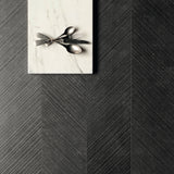 A vast and varied world. The first step, the selection of stones: a path that goes from light to dark, a journey that proceeds in several directions to get to 3 different looks. The delicate mix of beige; the graphic lines of grey and the traces of the black tone. The formats - rectified slabs 20x80 cm. The second step, the study of three different types of decorative elements based on texture, color, and detail. A structured chevron, a symbol of light that draws the material (IN EVERY BOX THERE ARE 3 RIGHT PIECES AND 3 LEFT PIECES).