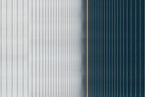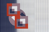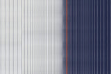White, red, blue, the primary colours of the Bauhaus, are the key to a graphic pattern that favours regular geometric shapes, the circle and the square. These contrasting shades animate the surface, striped by a succession of parallel lines that seem to go on forever.