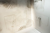 Palm tree and geometric shapes combined in sand tones to modernize your shower space. Two colour options for a smoother feel or a wall full of personality.