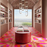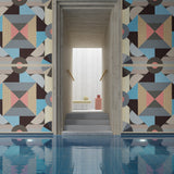 Colored geometric labyrinths, graphic textures running through the entirety of the surface making it extremely contemporary, playful, and cheerful.