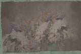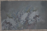 Amidst a sandstorm, the shrubs remain resilient as they are not bent by the powerful winds. The landscape depicted in this print exudes a visionary atmosphere, with a mix of colors and reflections that create a dream-like quality. The blurred contours of flowers and leaves add complexity to the scene, causing a beautiful interplay of shapes and forms.