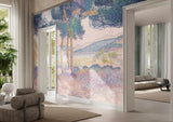This piece features an elegiac foreshortening, with a small path winding through valleys and heights. The addition of vibrant brushstrokes of color adds a sense of vitality. It serves as an enticing invitation to explore new and unfamiliar places that bring nourishment to the eyes and soul.
