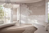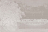 As if embroidered with the tender spring leaves that cover them, bent branches reflect on water. Further on, a dense curtain of tall trees and hardly discernible house windows. An imaginative transfiguration of Dover, the departure point for English aristocrats on their Grand Tour, illuminated by thin brushstrokes of luminescent white. This subject freely interprets the collection theme "On the trail of the Grand Tour", between Idyllic views, architectural detail and timelessly elegant cities of art.