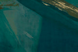 The surface is adorned with gentle brushstrokes, reminiscent of a delicate light peering through a velvet curtain. A serene, shadowy brightness engulfs the surroundings with muted colors.