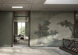 A suspended landscape is captured in a moment of stillness, creating a silent dialogue between reality and imagination. Vegetable forms move gracefully, evoking a delicate forest scent in the air. This fusion of nature and imagination creates a serene atmosphere.
