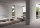 La force du motif anime des formes primaires et rationnelles qui s'entrecroisent et développent une séquence dominée par la plasticité sculpturale. Tout concourt à évoquer la relation entre pleins et vides qui anime des volumes architecturaux denses en matière et à communiquer une énergie. Ce sujet interprète librement le thème de la collection « Au-delà de la forme », une réinterprétation contemporaine du motif narratif pur et rigoureux, des nuances monochromes et de la texture, typiques du mouvement architectural brutaliste des années 1950.