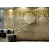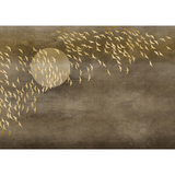 Description : Volée d'oiseaux au-dessus de la lune dans des tons dorés - code couleur GLGO111A . Autres modèles et couleurs ci-dessous.