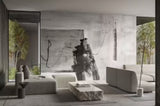 Une toile minimaliste recèle des symboles aussi intenses qu'énigmatiques. Champs de lumière et d'obscurité fusionnent, entrecoupés de paraboles au rythme soutenu qui se rejoignent au centre, où un coup de pinceau révèle le cœur battant du processus créatif. Ce sujet interprète librement le thème de la collection « Design meets rhythm », qui explore le lien entre le son et l'art figuratif.