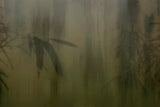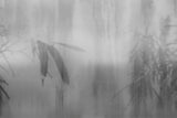 Les formes végétales apparaissent comme des ombres éthérées dans une brume immobile, chacune suspendue dans l'air et créant une ambiance d'énigme paisible.