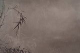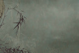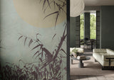 Le spectateur lève les yeux vers une sphère qui s'estompe, délicatement posée sur des feuilles chatoyantes. Sur un ciel infini, rayonnant d'intensité, un paysage captivant apparaît, évoquant une sensation de connexion totale et d'apesanteur.