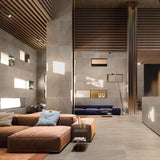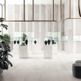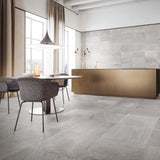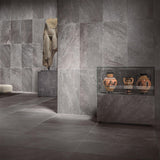 Carrelage de sol en céramique au style naturel et à l'esprit raffiné : des effets de matières douces interprètent les roches, les pierres, les sables, traduits en surfaces fluides.