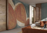 The motif of desert sand loops and large waterways is a powerful element in this product, evoking a sense of strength and energy. The warm earth tones and use of lines also add to the overall exaltation and definition of the walls, creating a warm and welcoming environment.