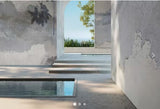 The workings of time on the walls and impressions of flowers and wild plants evoke the beauty of Greek island landscapes. A surface that reflects and diffuses light like sovas, the white plaster traditionally used on Greek houses.