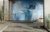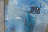 Broad brushstrokes of deep blue and white echo the waves breaking against the rocks of Spilia, a rocky beach situated on the northern coast of the island of Hydra.
