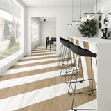 A fluid dialogue between the wood and the stone, that allows the most diverse and creative combinations, leaving to the design full freedom.