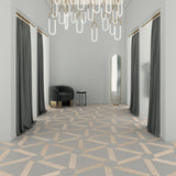 Chevron and trapezium complementary shapes, both with a 60º angle in common, to set up in combination or solo.