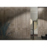 Beschrijving: Wandpatroon met plantenmotief in warme grijstinten - kleurcode GLBO111A. Alternatieve ontwerpen en kleuren hieronder.