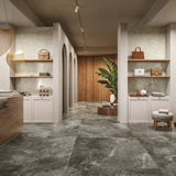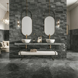 Deze collectie is geïnspireerd op de erosieve werking van water: waar de steen tevoorschijn komt, blijft het effect textuur en structuur behouden; waar het ondergedompeld is, wordt het gladgestreken en verzacht in contrasten, waardoor het een delicater en eleganter uiterlijk krijgt.