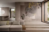 Een elegante compositie speelt met de kruising van geometrische en klimmende vormen. De grote centrale bol met zijn marmeren aders roept een klassieke wereld op, ver weg en toch dichtbij, zoals die uit mythen. Dit onderwerp interpreteert vrij het collectiethema "Verkenning van betoverde koninkrijken". Een startpunt voor een boeiende reis om nieuwe manieren te ontdekken waarop het plantenrijk ons kan verrassen. Suggesties van de archaïsche wereld, tussen mythe en legende, waar nimfen, mooie en sierlijke godheden, versierd met bloemen, te vinden zijn.