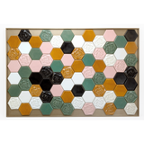 Picture showed: floral blossom with floral and floral plain tiles in black matte, white matte, rose matte, ocre and forest, bronze wood frame.