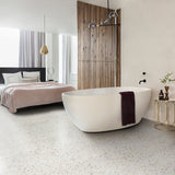 Nowadays Terrazzo is super hot in the interior trend and this collection is the perfect reinterpretation of seamless terrazzo floor without the well-known disadvantages. Our PVC/Vinyl tiles are stain-resistant, there is no risk of cracking and the floor is easy to install without extensive preparation. In addition, you do not have to take drying times into account: your PVC/Vinyl floor is immediately accessible!