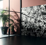 Suspended fragments in a geometrically irregular way to create a fluid visual rhythm. White and black in opposition, an ongoing language, synonymous with timeless atmospheres. An opaque surface, that leaves room for its lively essence. A rebel soul in an elegant body, this is the secret of Supreme, transmitting a decisive personality.